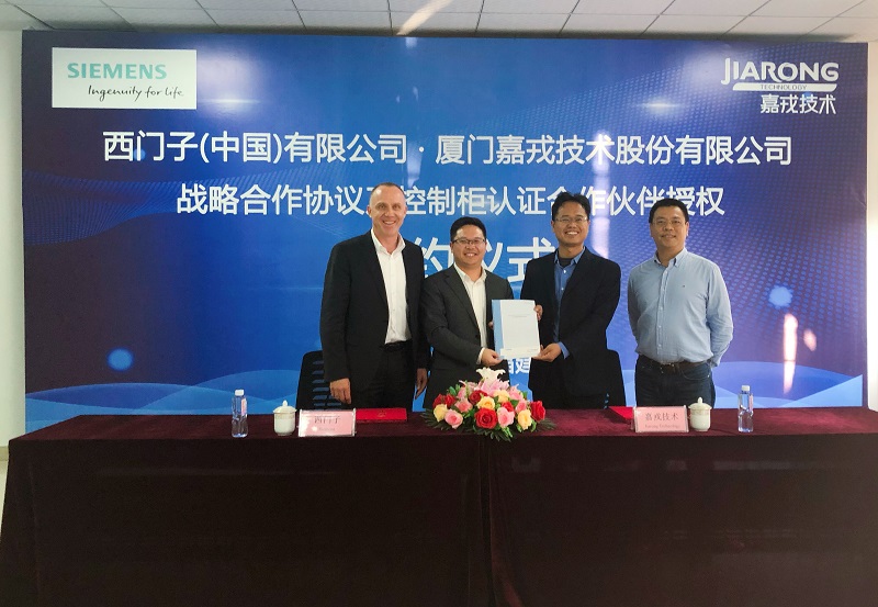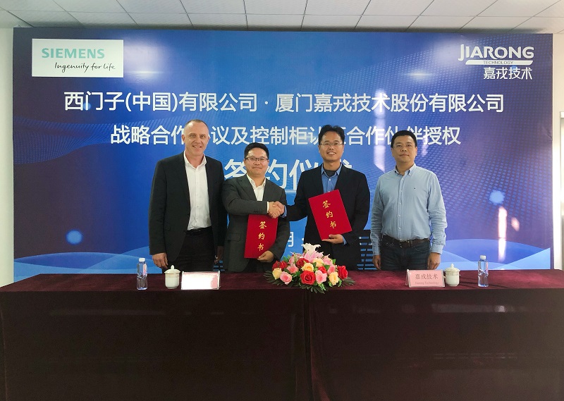 2019年12月17日下午,嘉戎&西門子戰(zhàn)略合作協(xié)議及控制柜認證合作伙伴授權(quán)簽約儀式在廈門嘉戎技術(shù)股份有限公司舉行,嘉戎技術(shù)董事長蔣林煜、總經(jīng)理董正軍、西門子大中華地區(qū)副總裁Joerg Westerholt、西門子數(shù)字化工業(yè)集團福建總監(jiān)譚韜文及西門子大中華地區(qū)相關(guān)領(lǐng)導出席本次簽約儀式,共同見證了這個重要時刻。 此次合作簽約是嘉戎技術(shù)與西門子的強強聯(lián)手,也是為嘉戎技術(shù)致力于成為全球領(lǐng)先的膜技術(shù)企業(yè)助力護航,更是在踐行“打造精品、服務客戶、保護環(huán)境”的使命中的又一次升級,具有深遠的戰(zhàn)略意義。 簽約儀式現(xiàn)場,嘉戎技術(shù)總經(jīng)理董正軍向來訪的嘉賓介紹了嘉戎技術(shù)的發(fā)展歷程及產(chǎn)品服務,董總表示:西門子是我們的親密合作伙伴,也是嘉戎產(chǎn)品的重要品質(zhì)保障,接下來,嘉戎技術(shù)將與西門子更加緊密合作,繼續(xù)打造精品,用高品質(zhì)產(chǎn)品和服務踐行我們的環(huán)保使命。 ////////// 西門子數(shù)字化工業(yè)集團福建總監(jiān)譚韜文向大家介紹了西門子數(shù)字化工業(yè)集團概況,并表達了繼續(xù)與嘉戎技術(shù)深入合作的意愿。 隨后,在大家的共同見證下,嘉戎技術(shù)總經(jīng)理董正軍與西門子數(shù)字化工業(yè)集團福建總監(jiān)譚韜文代表雙方鄭重地簽訂了戰(zhàn)略合作協(xié)議。 簽約儀式結(jié)束后,嘉戎技術(shù)總經(jīng)理董正軍帶領(lǐng)西門子數(shù)字化工業(yè)集團福建總監(jiān)譚韜文等嘉賓前往嘉戎裝備制造工廠參觀,雙方在西門子控制柜前進行合影。 新的平臺,更高的期許,嘉戎技術(shù)將與西門子強強聯(lián)合,用精湛品質(zhì)的設(shè)備產(chǎn)品,用不斷鉆研創(chuàng)新的技術(shù),用誠心踏實專注的服務,為客戶解決環(huán)保難題,為國家守護綠水青山!