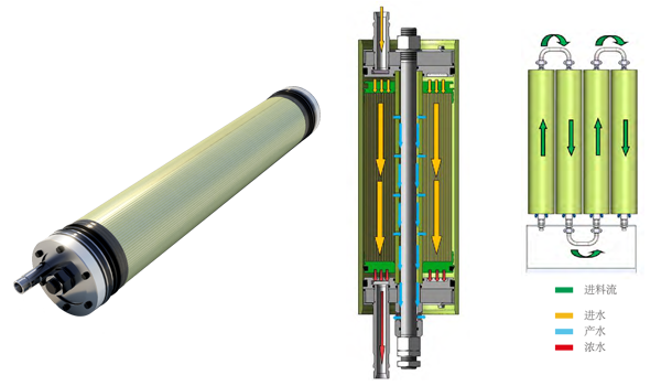 ST膜采用卷式膜結(jié)構(gòu),膜片采用工業(yè)抗污染反滲透膜或納濾膜,格網(wǎng)通道采用區(qū)別于一般卷式膜的平行格網(wǎng)結(jié)構(gòu),從而使得一般卷式膜無(wú)法應(yīng)用的地方也能長(zhǎng)期穩(wěn)定運(yùn)行。嘉戎技術(shù)的ST膜組件,脫鹽率、水通量、COD截留率高,且具有很強(qiáng)的抗污染性,能夠適用各種高濃度高難度污水條件,運(yùn)行經(jīng)濟(jì)高效。